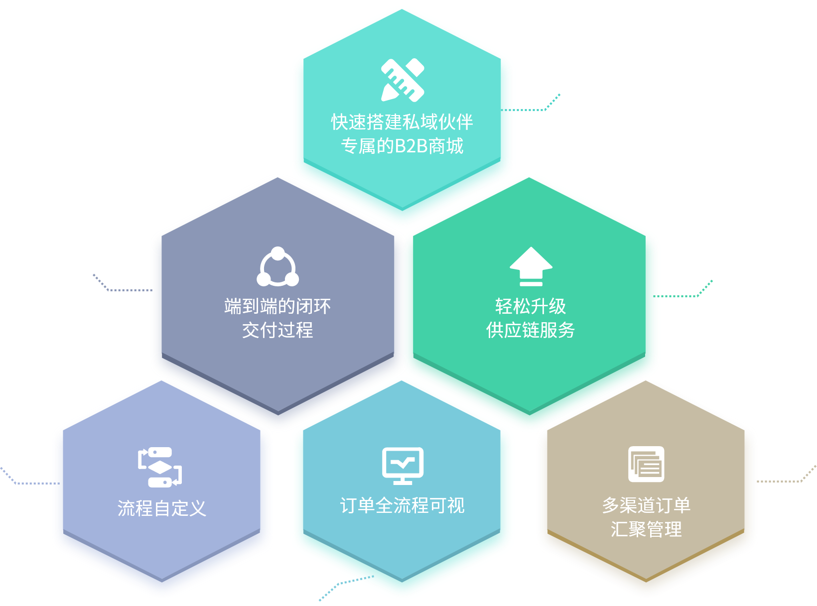 为私域合作伙伴提供商城式展示和订单交易方式,信息更丰富,交易更便捷,只针对既有合作伙伴,保护渠道资源端到端的闭环交付过程